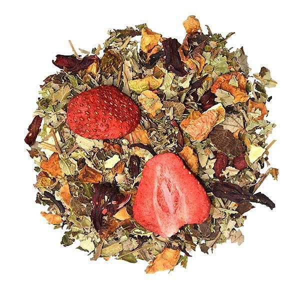 Zutaten: Apfel*, Brombeerblätter*, Hibiskus*, Orangenschalen*, Apfelecken*, natürliches Erdbeer Aroma, natürliches Cranberry Aroma, Erdbeere* (1%), Holunderbeere* (1%). * Aus kontrolliert biologischem Anbau